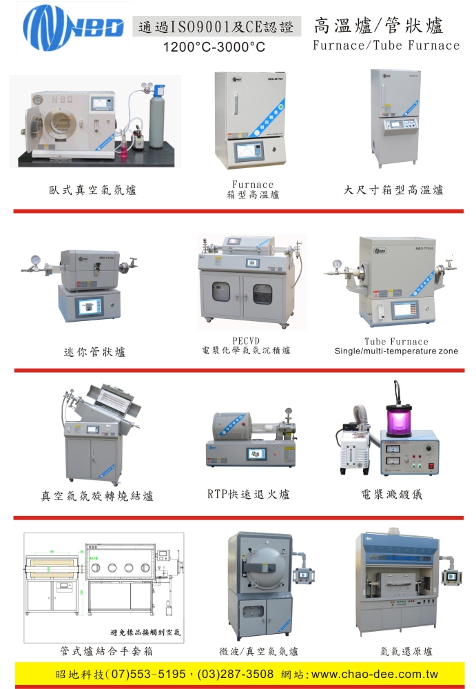 昭地公司自成立以來,一直以最積極誠懇和熱忱負責態度來服務客戶, 並持續開發及引進更多新產品和新技術,以滿足客戶的所有需求,目前有代理經銷:電漿清洗機/設備、派瑞林鍍膜、接觸角儀/達因值儀、表面張力儀、管狀爐/箱型爐、大口徑管狀爐、耐腐蝕高溫爐、RTP快速退火爐、真空氣氛爐、晶圓退火爐、靜電消除器、行星式球磨儀、可程式高壓滅菌釜、物性測定儀、食用油總極性化合物檢測儀、培養箱、恆溫恆濕箱、無菌操作台、生物安全櫃、真空烘箱、超音波細胞破碎儀、分光光度計、色差計、屈折儀、旋光儀、全自動熔點儀、土壤PH測試儀、熱卡計、搖篩機、數位攪拌機、多功能水質分析儀、遠端監視pH/導電度計等各式優良科學精密分析儀器和儀器技術諮詢及維修服務。因銷售產品繁多, 欲了解本公司產品更多資訊或對產品有興趣者, 非常歡迎隨時來電洽詢 TEL:886-7-5535195 , 或來函E-MAIL : [email protected] , 或參觀網站 : www.chao-dee.com.tw